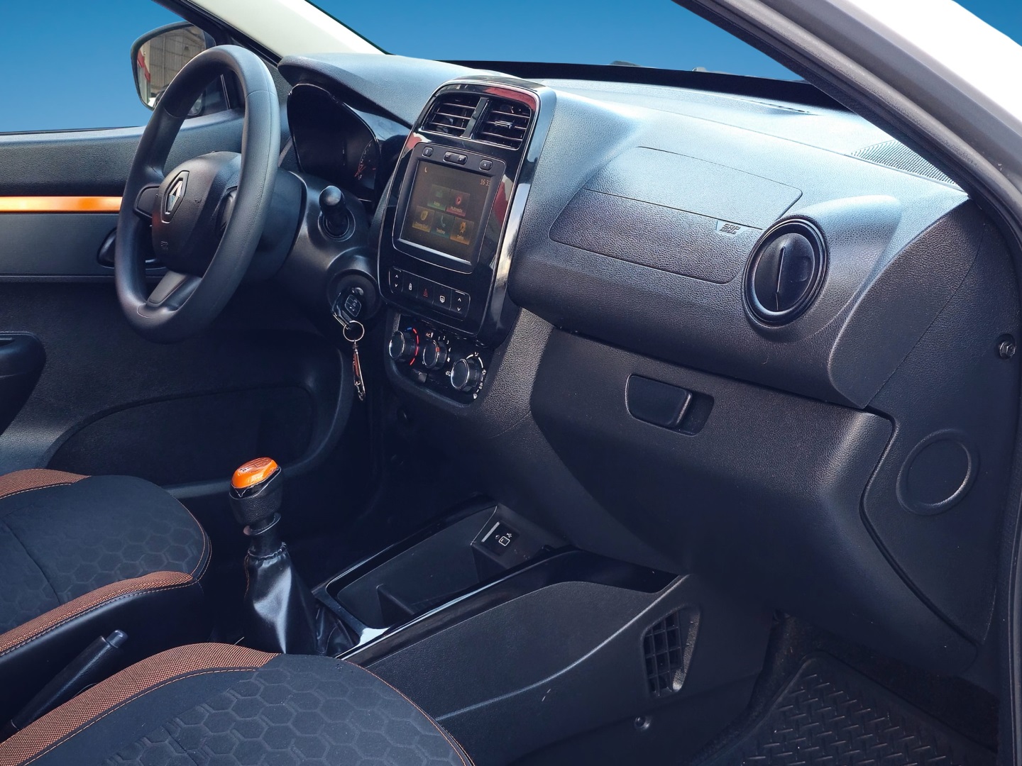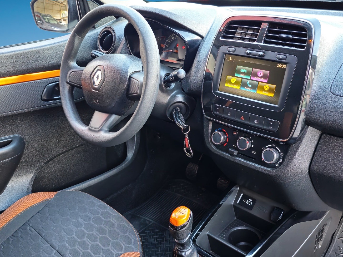 – BANCOS PERSONALIZADOS COM DETALHES EM LARANJA / DETALHES EM LARANJA NOS FORROS DE PORTA / DETALHES EM LARANJA NA MANOPLA DO CÂMBIO